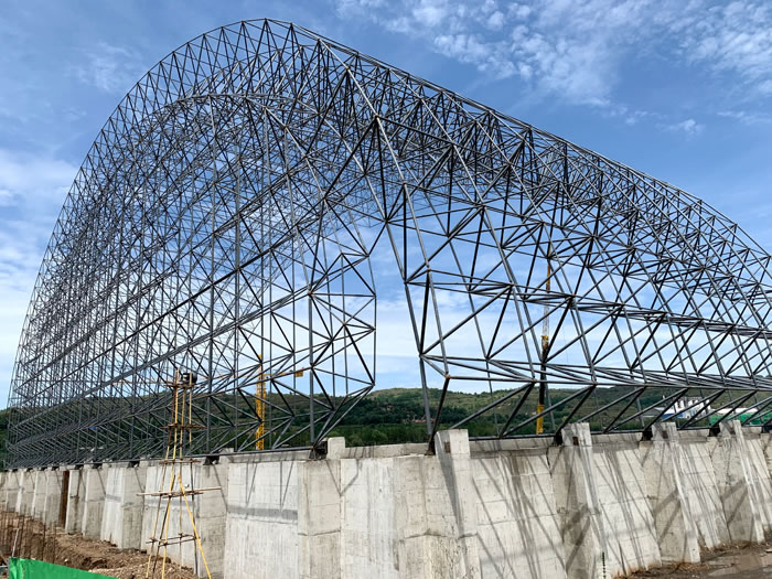(2)网架加工前应对现场尺寸进行复测,确认无误后方可进行加工、安装;网架制作、运输、安装应遵守《空间网格结构技术规程》JGJ7-2010、《钢网架铁力螺栓球节点》JG/T 10-2009、《钢网架铁力螺栓球节点用高强度螺栓》 GB/T 16939-2016、《铁力钢结构铁力工程铁力施工规范》 GB50755-2012、《铁力钢结构铁力工程铁力施工质量验收标准》 GB50205-2020。